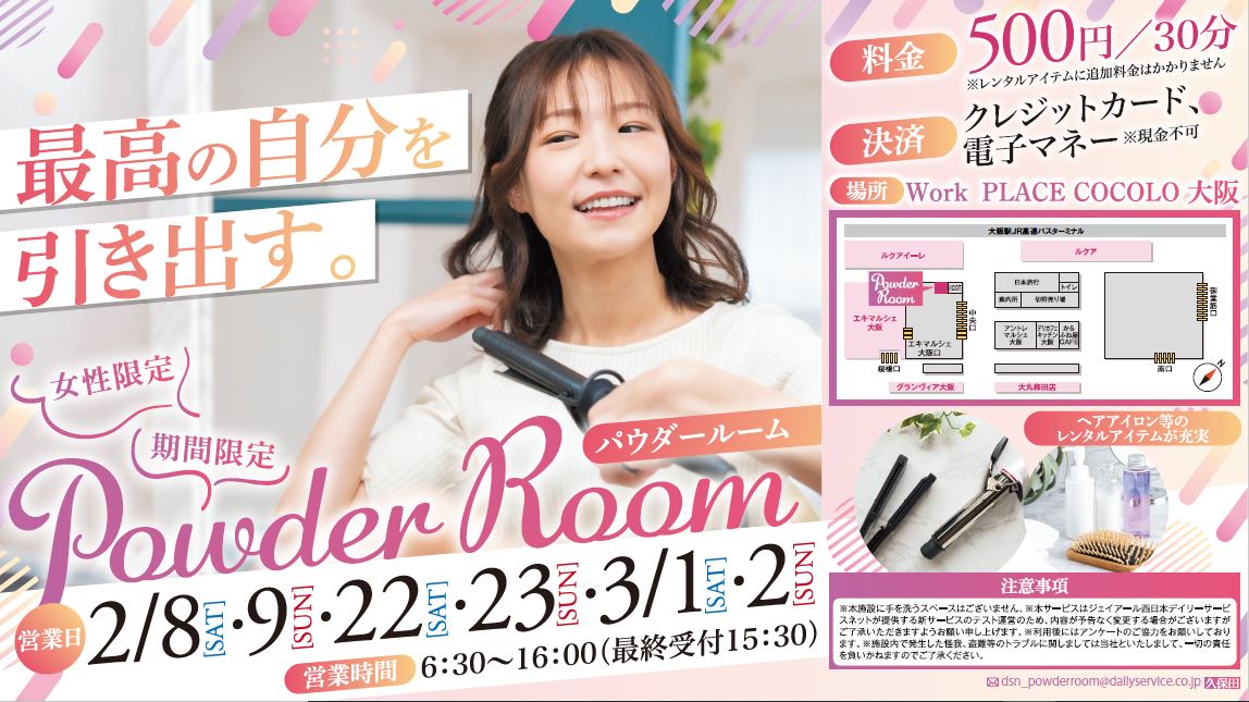 JR 오사카역 구내에서 파우더룸의 테스트 운영을 기간 한정으로 실시합니다!