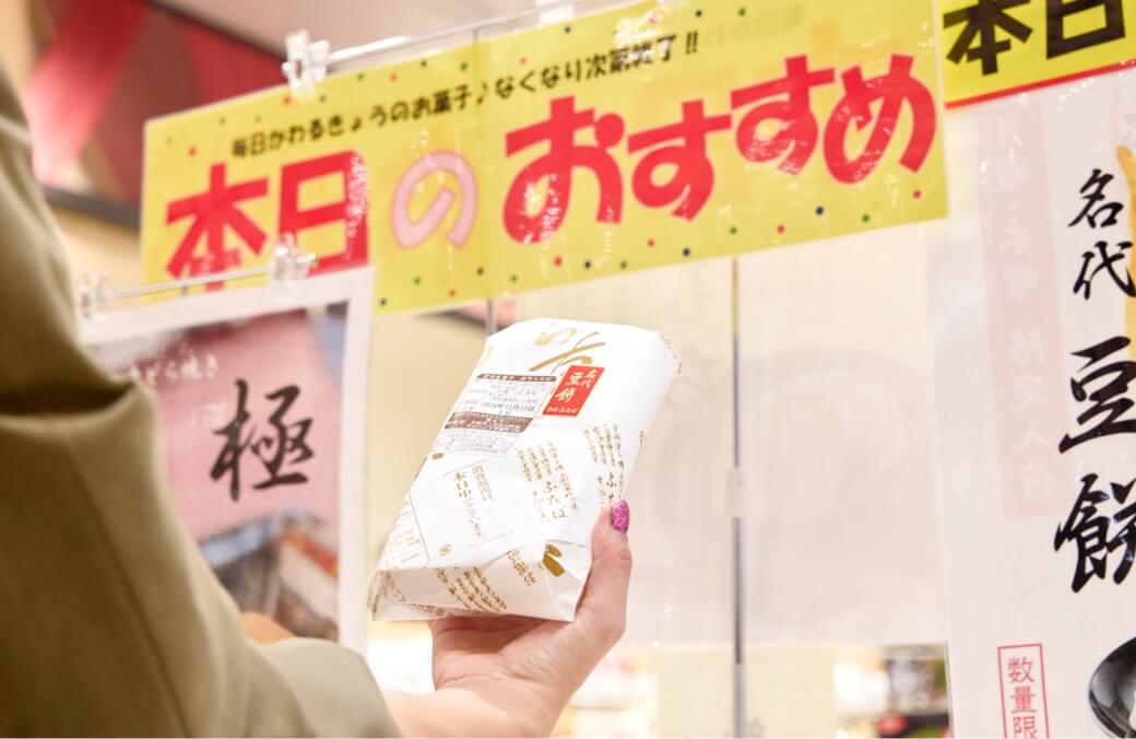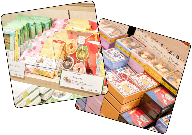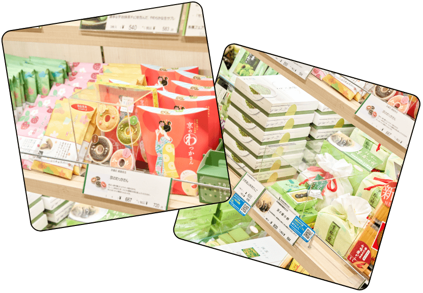 현지의 노포의 명과가 줄지어, 특히 일본 과자나 말차를 사용한 스위트가 인기입니다.사계절의 교토를 표현한 과자는 선물에도 딱.현지의 명과 명산품을 간편하게 손에 넣고 싶은 분에게 추천하는 명소입니다.외국인 관광객도 많기 때문에 면세 대응도 완비.해외 손님에게도 기뻐할 수 있는 상품이 갖추어져 있습니다.