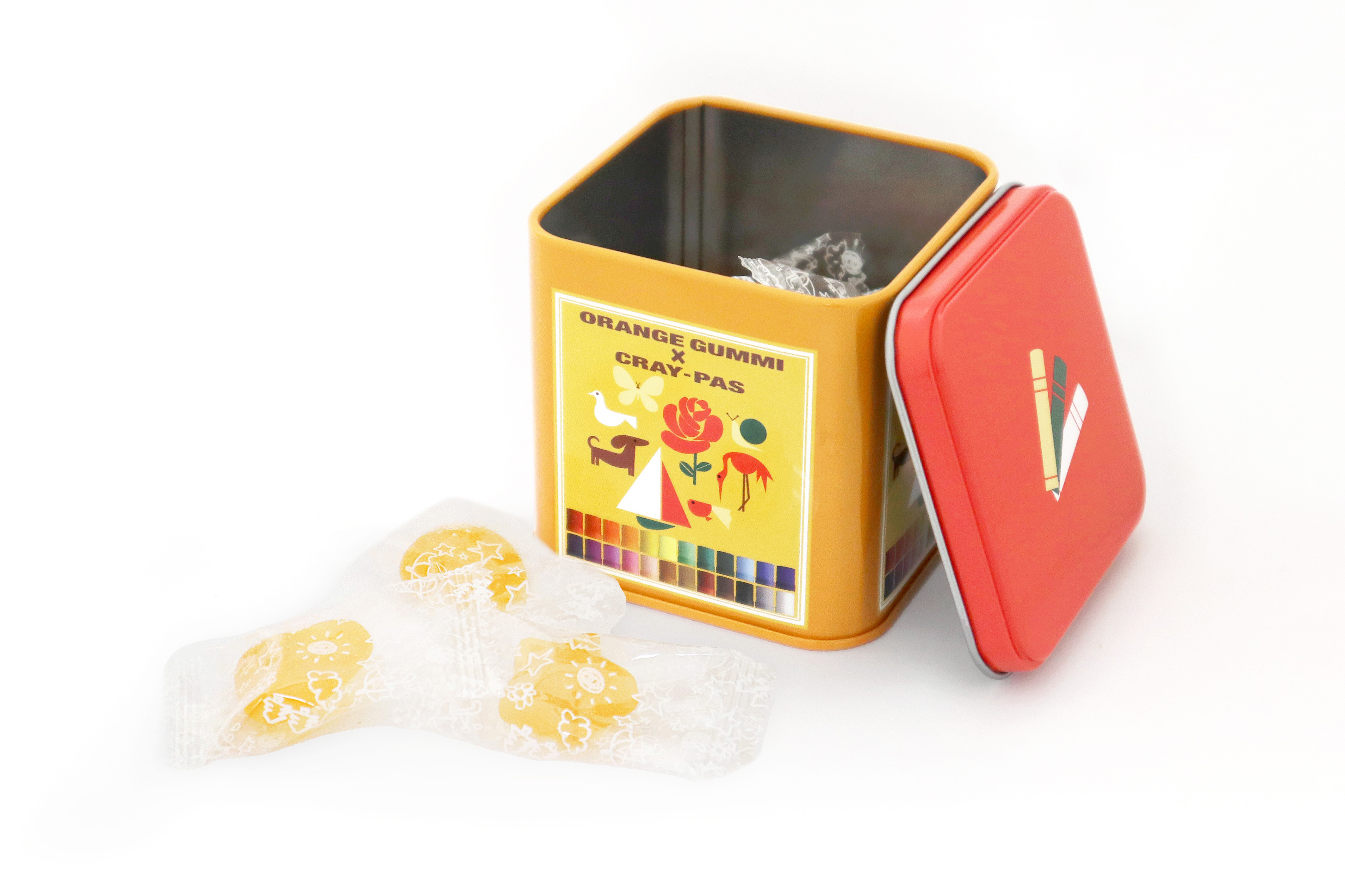 JR 서일본 한정 판매!JR 서일본 한정 판매!오사카 기업·(주)사쿠라 크레파스와의 콜라보레이션 상품크레파스 무늬 캔 안에는 쥬시한 오렌지 그미가 들어 있습니다.