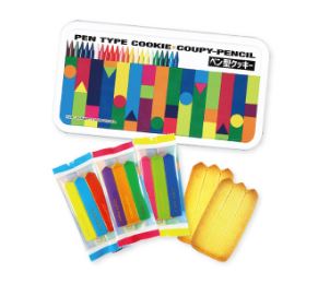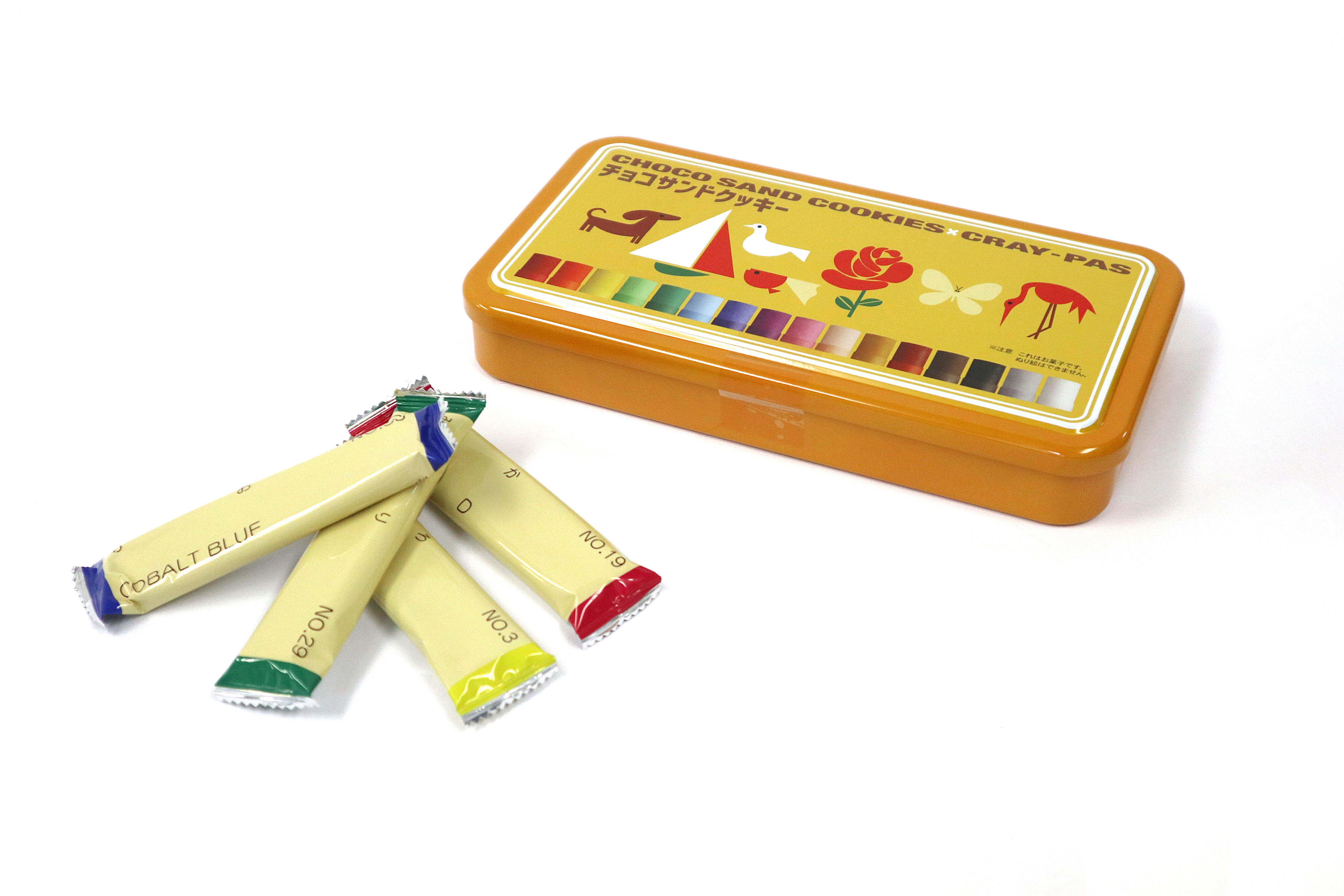 JR 서일본 한정 판매!오사카 기업·(주)사쿠라 크레파스와의 콜라보레이션 상품크레파스 무늬 캔 안에는 초콜릿 샌드 쿠키가 들어 있습니다.개인 포장도 크레파스를 이미지 한 디자인으로 되어 있습니다.