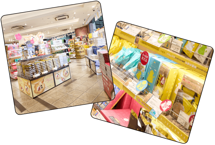 출장이나 여행의 마지막에 들른다면 신칸센 중앙구 바로의 「앙트레 마르쉐 신오사카 중앙구점」을 추천서일본 최대급의 매장을 자랑하며 압도적인 물건으로, 여기에 오면 원하는 선물을 반드시 찾을 수 있을 것이다.오사카의 정평 선물은 물론, 게이한신 지역의 인기 상품, 심지어 캐주얼하고 귀여운 잡화도 갖추어져 있습니다.
